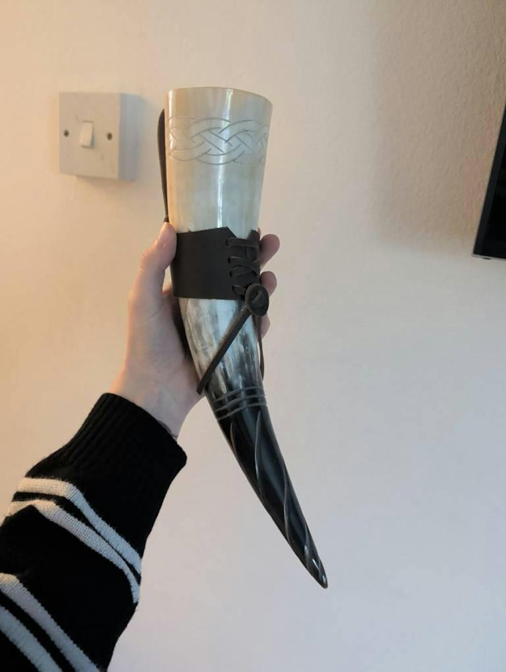I wanted to get a drinking horn for my partner for our Nordic wedding ceremony! I loved that this came with both a stand and a belt loop! It’s beautiful! Both I and my husband are very happy with it! 10/10