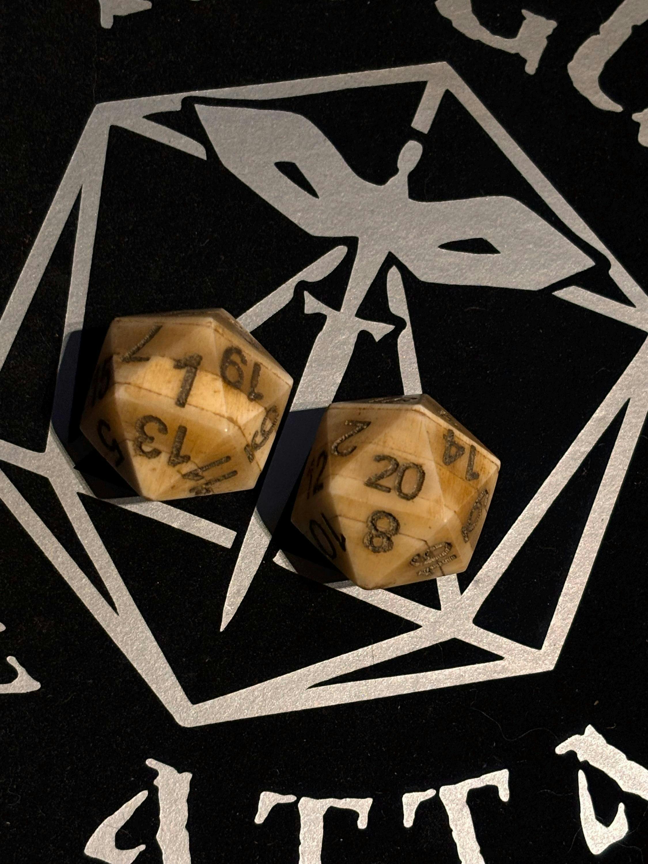 Love this DnD Dice set with horn shaker. I bought it for my husband fro Christmas this year, and I am so excited to give it to him. The dice and shaker are truly a work of art!